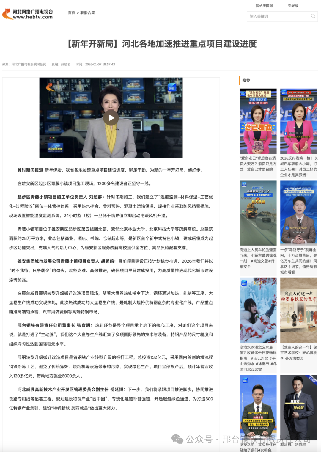 邢臺(tái)鋼鐵有限責(zé)任公司董事長 張育明:熱軋環(huán)節(jié)是整個(gè)項(xiàng)目承上啟下的核心工序,對(duì)咱們這個(gè)項(xiàng)目來說,就是打通了“主動(dòng)脈”,我們這個(gè)大盤卷生產(chǎn)線匯集了多項(xiàng)國際領(lǐng)先的技術(shù)與裝備,特鋼產(chǎn)品的尺寸精度和組織均勻性達(dá)到國際領(lǐng)先水平。
