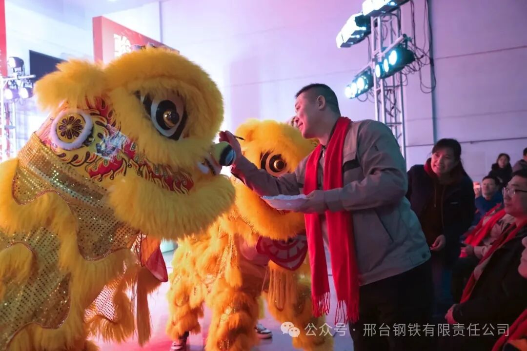 聯(lián)歡會在邢鋼搬遷項(xiàng)目指揮部的獅鼓表演《盛世歡歌》中拉開帷幕,張育明董事長為瑞獅點(diǎn)睛,預(yù)示著為新邢鋼帶來蓬勃朝氣與吉慶福運(yùn)!